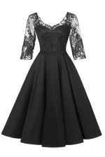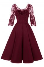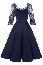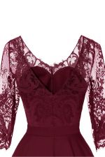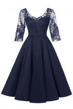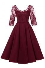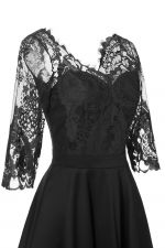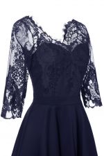 A-line V-neck Half-Sleeves Knee-length Lace Party Dress With Lace