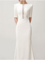 Mermaid Short Sleeves Tulle Bridal Attire With Sweep / Brush Train