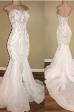 Mermaid Strapless Sleeveless Sweep / Brush Train Bridal Gown With Lace