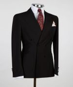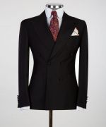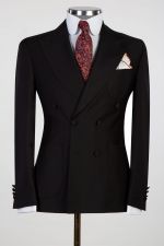 Black Double Breasted Business Men Suit with Peaked Lapel