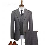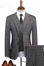 Dark Gray Plaid Three Pieces Men Suit with Notched Lapel for Business