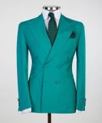 Green Two Pieces Prom Men Suit with Double Breasted Peaked Lapel