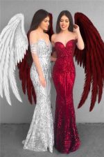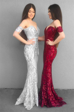 Mermaid Off-the-shoulder Sleeveless Sweep / Brush Train Evening Dress With Sequins
