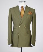 Olive Green Close Fitting Double Breasted Prom Men Suit with Peaked Lapel