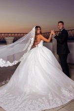 Ball Gown Sweetheart Neck Sleeveless Chapel Train Bridal Dress With Lace