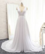 A-line Straps V-neck Sleeveless Floor-length 100D Chiffon Wedding Dress