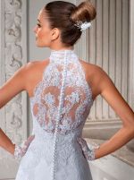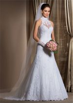 A-line High Neck Sleeveless Sweep / Brush Train Tulle Bridal Gown With Lace