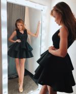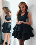 A-line V-neck Sleeveless Mini Homecoming Dress With Appliques