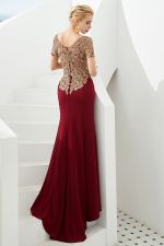 Mermaid Jewel Neck Short Sleeves Chapel Train Four-sided bomb Evening Gown With Lace