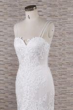 Mermaid Spaghetti Straps Sleeveless Chapel Train Tulle Wedding Gown With Lace