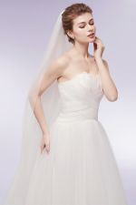 A-line Strapless Sweetheart Neck Sleeveless Chapel Train Tulle Wedding Gown With Feathers