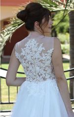 Column Jewel Neck Sleeveless Floor-length Tulle Wedding Dress With Ruffles