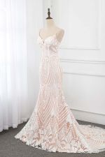 Column Spaghetti Straps V-neck Floor-length Tulle Bridal Dress With Appliques
