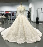 White A-Line Wedding Dress with Jewel Long Sleeves and Lace Appliques