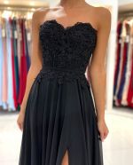A-line Strapless Sleeveless Floor-length 100D Chiffon Formal Wear With Lace