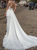 A-line V-neck Sleeveless Court Train 100D Chiffon Wedding Gown With Lace