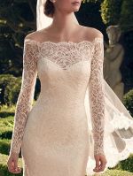 Mermaid Long Sleeves Sweep / Brush Train Lace Wedding Gown With Lace