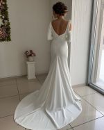 Column Long Sleeves Floor-length Satin Wedding Dress