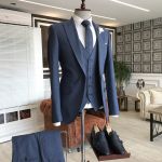 Navy Blue Slim Fit Business Suit with Peaked Lapel