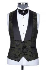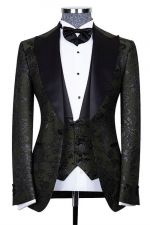 Black Three Pieces Jacquard Peaked Lapel Men's Suit for Wedding