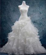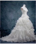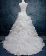 Column Sweetheart Neck Sleeveless Sweep / Brush Train Organza Wedding Gown With Ruffles