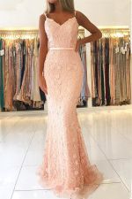 Column Spaghetti Straps Sleeveless Floor-length Evening Dress With Flower(s)