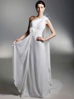 Column One Shoulder Sleeveless Chapel Train Tulle Bridal Gown With Appliques