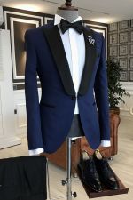 Navy Blue Mixed Black Prom Suit with Peaked Lapel
