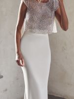 Two Pieces Cap Sleeves Court Train Tulle Wedding Dress With Sequins