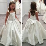 est A-Line White Children Dresses Sleeveless Beading Flower Girl Gowns with Bowknot