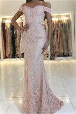 Mermaid Off-the-shoulder Sleeveless Sweep / Brush Train Homecoming Gown With Beading