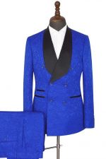 Royal Blue Double Breasted Jacquard Wedding Suit with Shawl Lapel