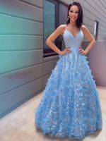 Ball Gown V-neck Long Sleeves Floor-length Lace Formal Dress With Lace