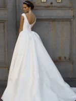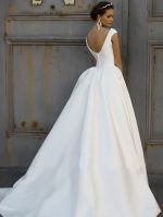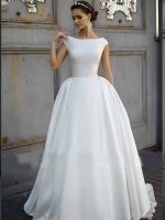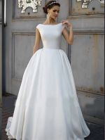 A-line Bateau Neck Cap Sleeves Tulle Wedding Gown With Court Train