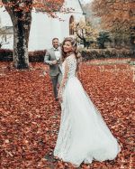 Mermaid Sweetheart Neck Long Sleeves Sweep / Brush Train Tulle Bridal Gown With Lace