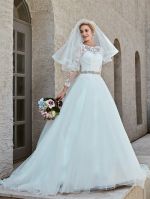 Ball Gown Bateau Neck Long Sleeves Chapel Train Tulle Bridal Gown With Lace
