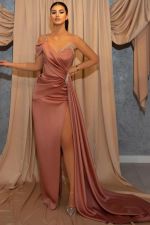 Mermaid One Shoulder Sleeveless Floor-length Stretch Satin Formal Dress With Ruffles