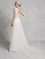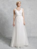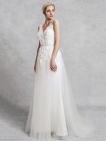 A-line Straps V-neck Court Train Lace Bridal Attire With Lace