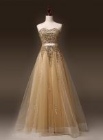 A-line Sweetheart Neck Sleeveless Floor-length Organza Evening Dress With Sequins
