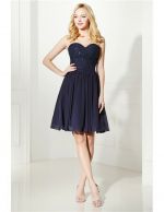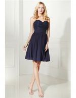 Strapless Navy Blue Lace Top Short Bridesmaid Dress