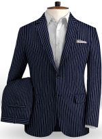 Dark Blue Striped Men Suits